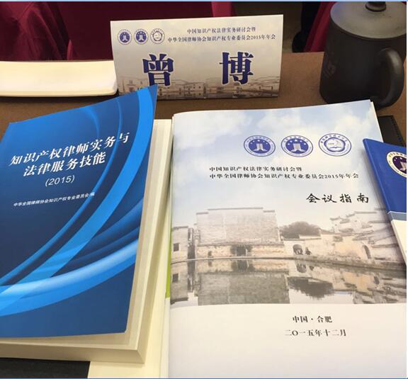 2015年12月18日-20日,中国知识产权法律实务研讨会暨中华全国律师协会知识产权专业委员会2015年年会在合肥召开。本次会议。由中华全国律师协会知识产权专业委员会、安徽省律师协会、中国科学技术大学公共事务学院主办,全国各地律师、法官、专家、学者近300余人参加。我所曾博律师参加了本次研讨会。